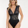 Shapewear Mock Neck Long Sleeve Floral Lace Bodysuit