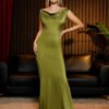 The Velvet Draped Long Sleeve Sculpting Column Gown is created as a versatile date-night dress that balances comfort with a refined silhouette. The fabric has a smooth, wearable feel that supports movement while maintaining shape throughout wear. Visible design details such as neckline structure, seam placement, and overall cut contribute to an elegant appearance. This dress is worn as a complete outfit, making it suitable for dinners, evenings out, or special occasions. It maintains its form with regular wear and offers dependable coverage with a confident, stylish finish.